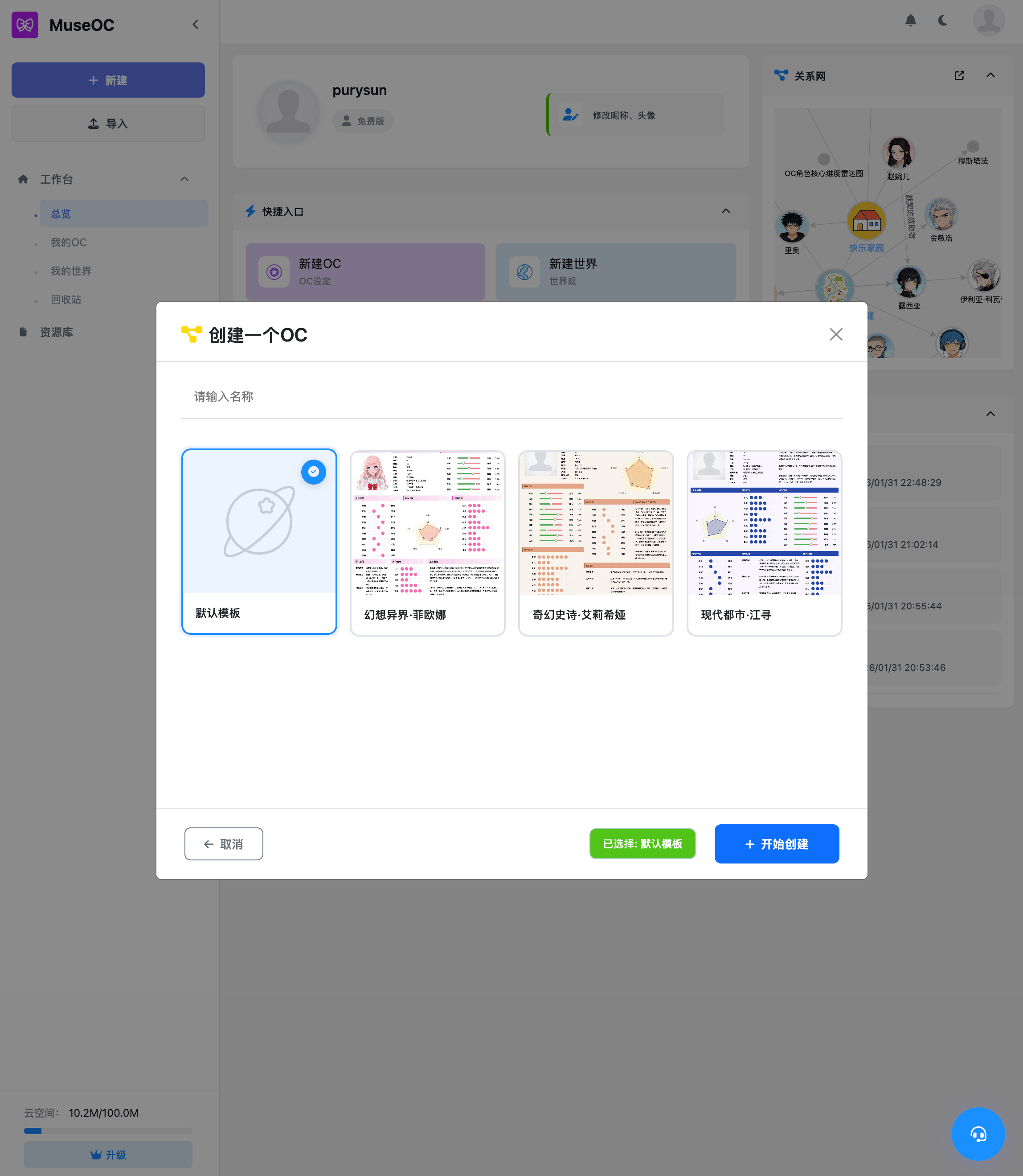 缪斯OC内置了角色档案、时间线、白板地图和文章系统,几乎覆盖世界观搭建工具的所有需求。