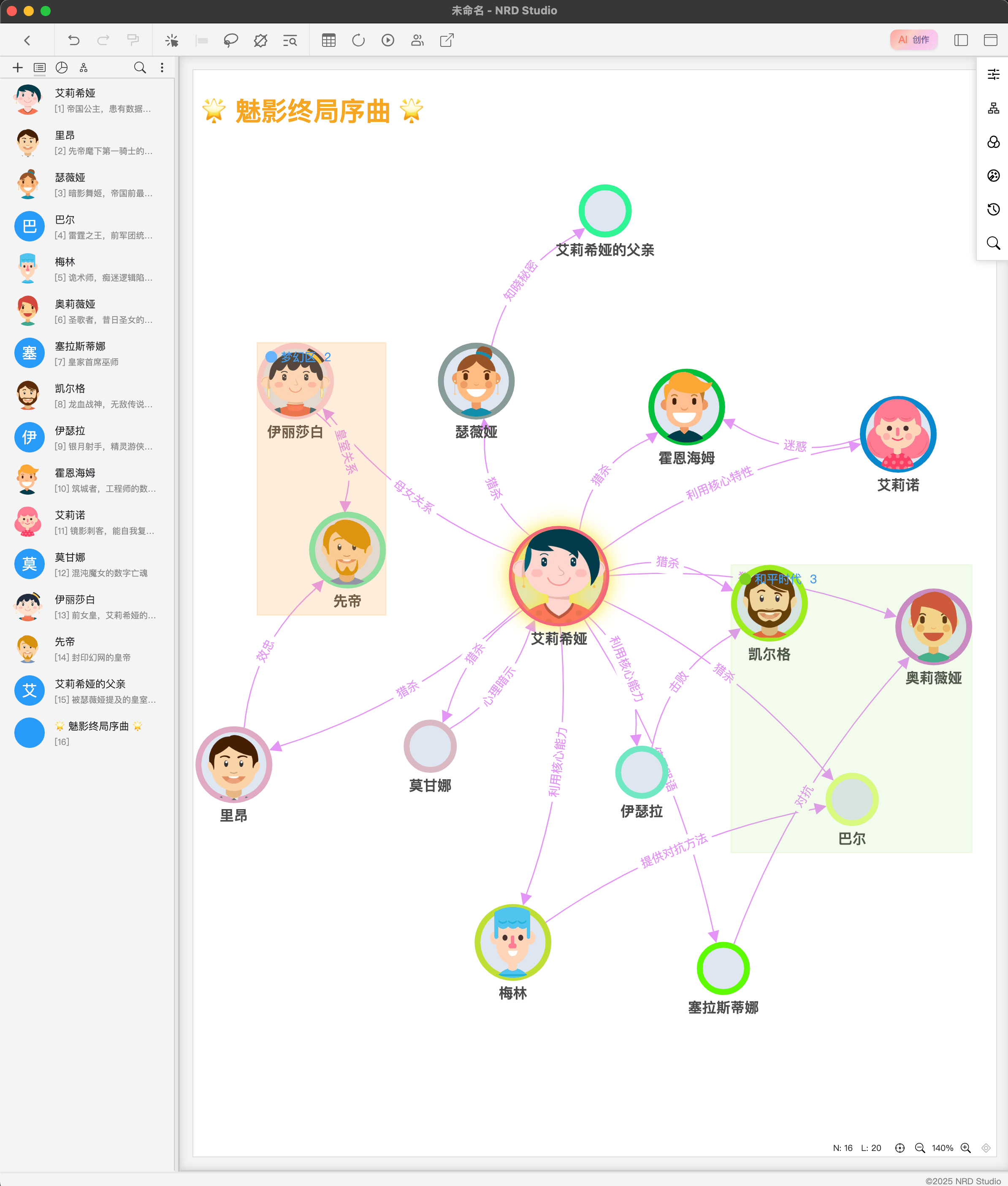 NRD Studio 原是知识图谱软件,用来做OC关系网也十分方便,主界面如图: